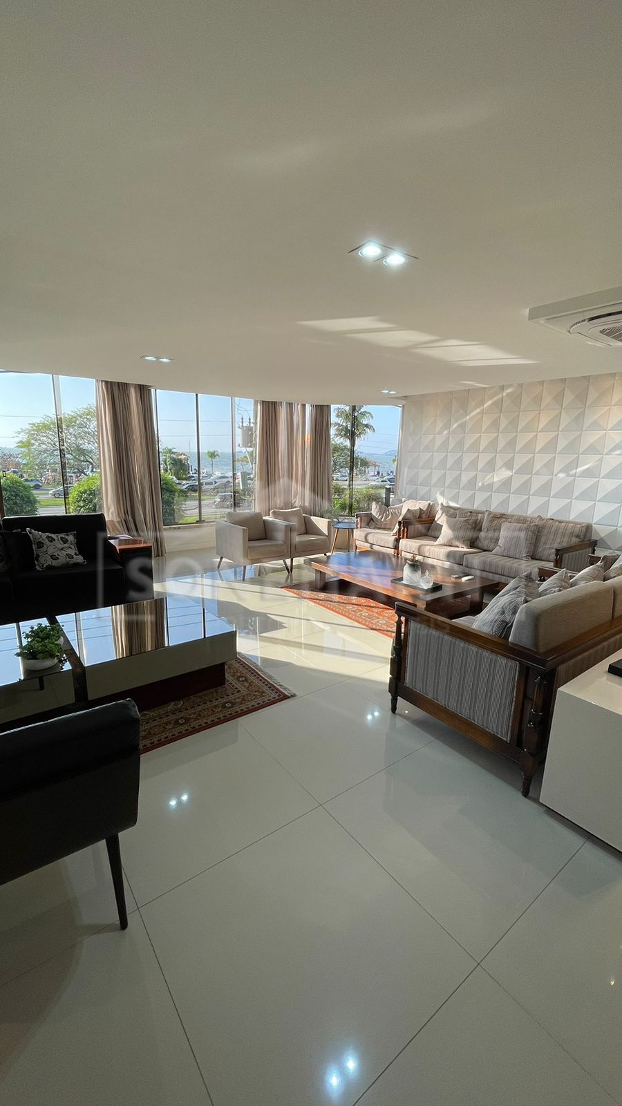 O amplo living é dividido em 3 ambientes, complementado por um escritório.