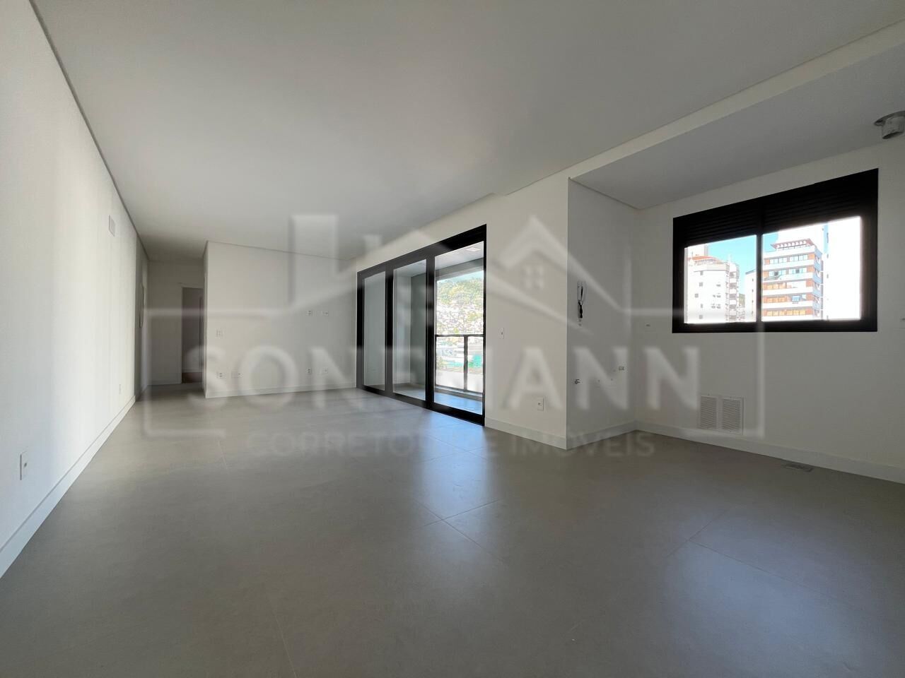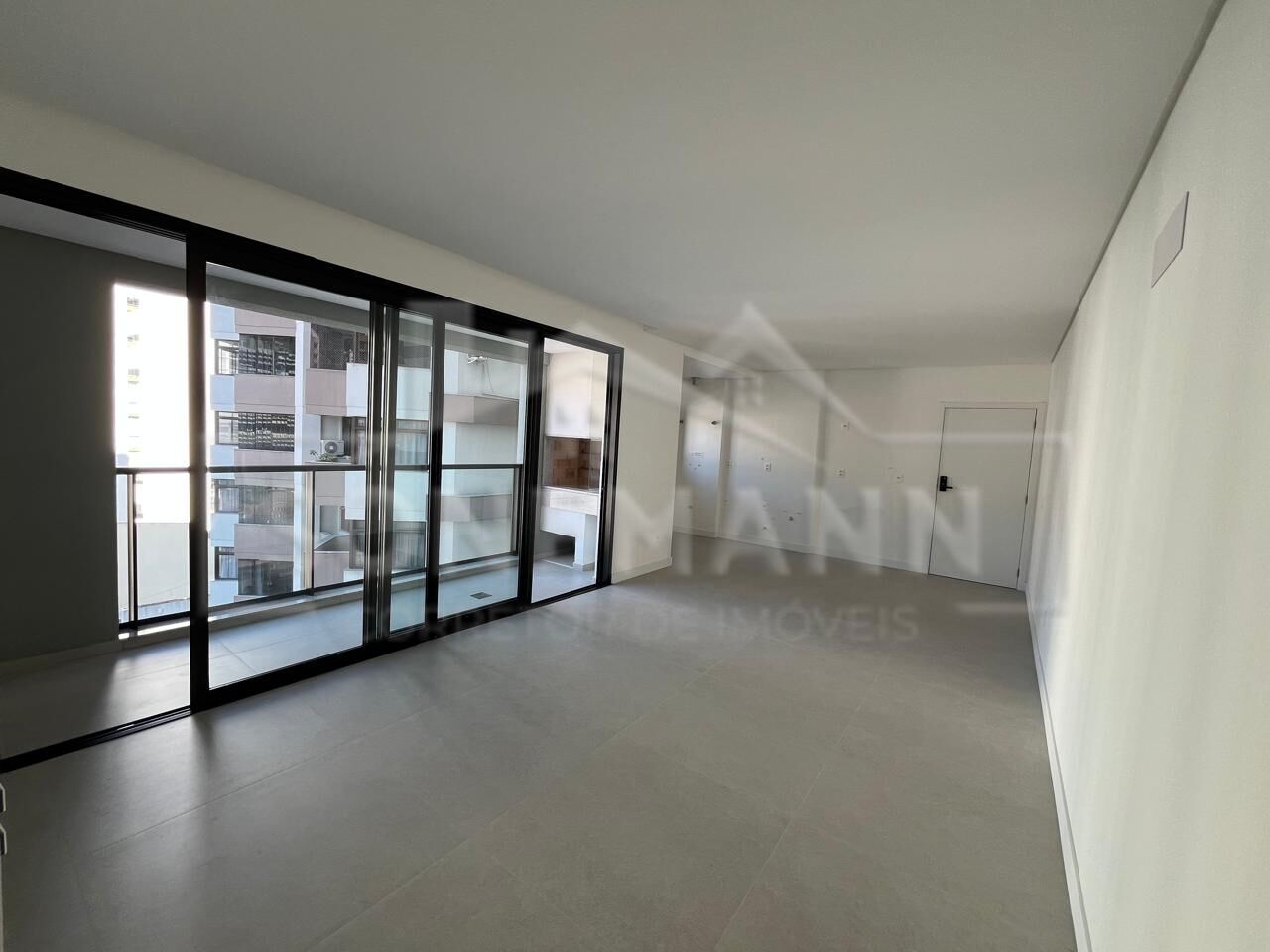 Piso porcelanato na sala, cozinha e circulação